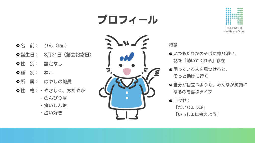 「りん」ちゃんは 林ヘルスケアグループ公式キャラクター です。